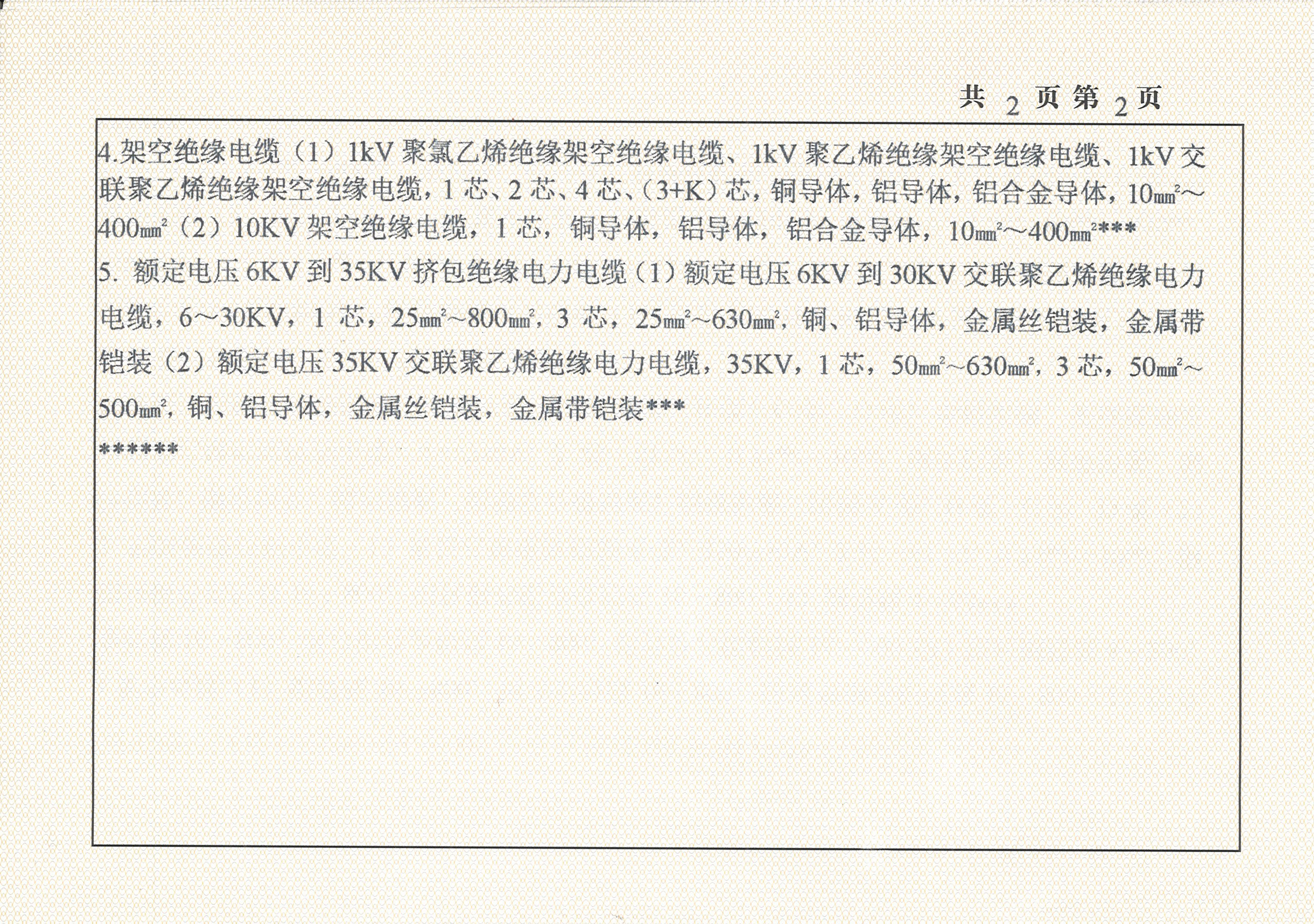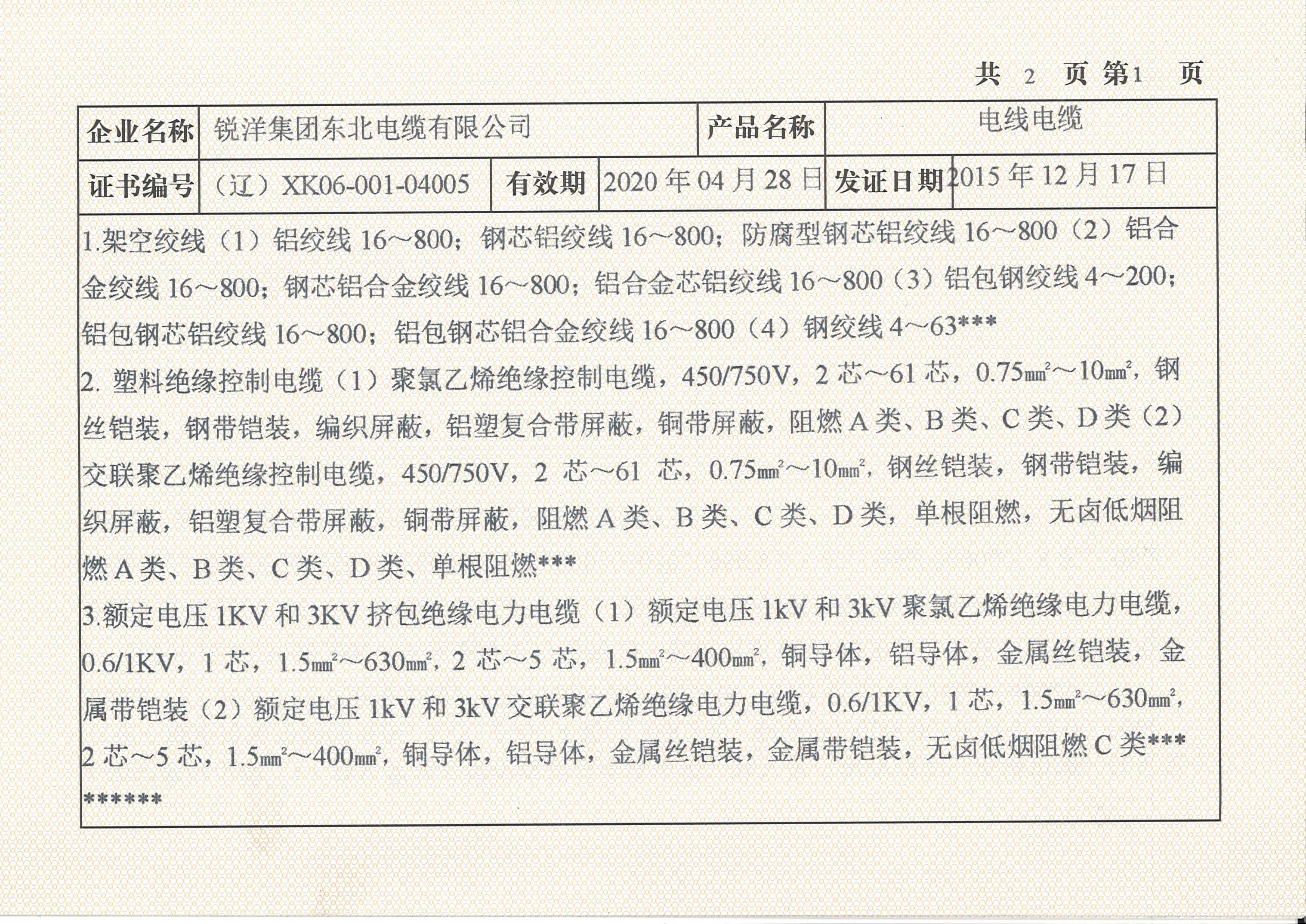 技術研發:在技術及產品研發上,公司始終走在行業前列。先后通過多項CCC中國國家強制性產品認證、PCCC電能認證、TUV德國萊茵認證、泰爾認證、煤安認證、礦安認證、機場助航燈電纜認證等一系列國內外權威認證。尤其新能源用電力電纜中的新型光伏線獲得TUV德國萊茵認證,這使公司躋身為全球為數不多獲得新型光伏線萊茵認證的線纜企業之一。