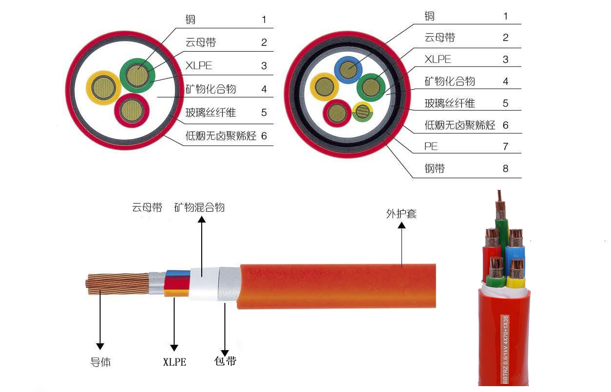 BBTRZ(BBTRZ-23)(柔性)礦物質絕緣(鋼帶鎧裝)防火電纜采用柔性結構,主要材料均采用無機材料,彌補了結構硬、易燃燒、有毒等缺陷,并且具有一些其他電纜不具有的優點,如:耐火、載流量大、耐沖擊電壓、耐機械損傷、無鹵無毒、防爆防水、耐腐蝕等特點。