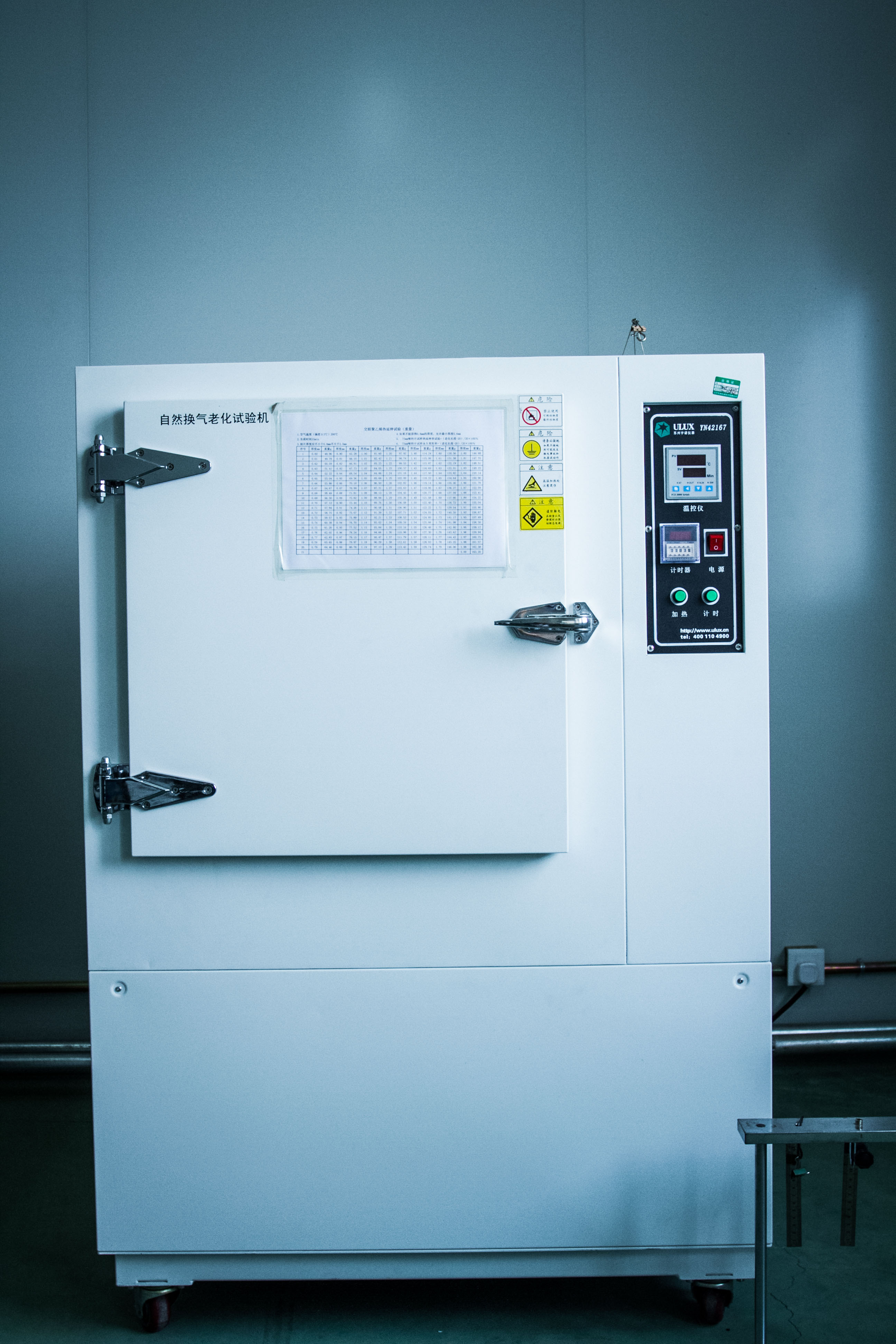 產(chǎn)品適用于橡膠、塑膠、人造皮革,電線、電纜、測試其材質(zhì)之老化、延伸率、抗張力,以比較試片老化前與老化后之抗拉強(qiáng)度及伸長率等變化情形。本機(jī)以熱風(fēng)循環(huán)方式,促使試片老化,內(nèi)箱密閉性強(qiáng),具有抽換內(nèi)箱空氣裝置,設(shè)有超溫自動切斷保護(hù)裝置。